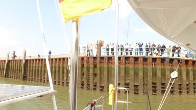 Helgoland, Borkum und Terschelling liegen hinter uns und wir laufen gerade unter Motor – gegen Wind und Welle – in Richtung Kornwerdersand, um dort ins Ijsselmeer zu schleusen.
