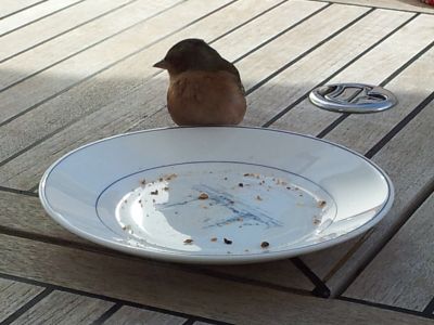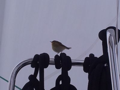 Auch die Wasseraufnahme wird verweigert. So müssen wir ihn – wenig später – leider See-bestatten. Wahrscheinlich war’s kein freiwilliger Besuch bei uns sondern eher eine Notlandung wegen Entkräftung.
