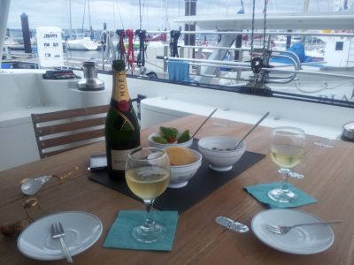 Dennoch zogen sich die letzten Meilen bis la Coruna unendlich lange hin, da uns eine Fahrt von nur 4,5kn durchs Wasser im Vergleich zur Rauschegeschwindigkeit von 14kn wie ein Dümpeln auf der Stelle vorkam. Der eingeschaltete Motorwind ließ uns aber das Ziel um 18.40h überglücklich und sehr, sehr müde erreichen.