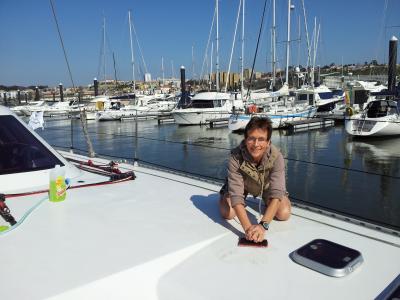 Es ist Mittwochmorgen. Peter und ich haben nach einem ausgedehnten Jogginglauf ein reichhaltiges Frühstück verdrückt und strecken unsere Bäuche gerade wohlig aus. Da klopft es an der Bordwand. Ich renne ins Cockpit und sehe drei stattliche, uniformierte Herren mit einer zierlichen Kommandantin vor mir. Nach einem freundlichen „Bom dia“ entschuldige ich mich, kein Portugiesisch zu sprechen und bitte die Herrschaften (da ich eine Kontrolle vermute) auf Englisch, an Bord zu kommen. Die Kommandantin murmelt in gebrochenem Englisch etwas von „control“ und „doc“ und hält mir ein Schriftstück hin. Ich interpretiere: Dokumentenkontrolle und bitte sie nochmals an Bord, um die Dokumente einsehen zu können. Nein sie will nicht, macht eine Streichelbewegung in Hundehöhe und wiederholt m.E.: „doc“ (oder meinte sie vielleicht „ dog“) on board“, woraus ich messerscharf schließe, dass sie mich nach einem Hund als mitreisendem Crewmitglied fragt. Ich sage prompt: „Nein, wir haben keinen Hund an Bord“…