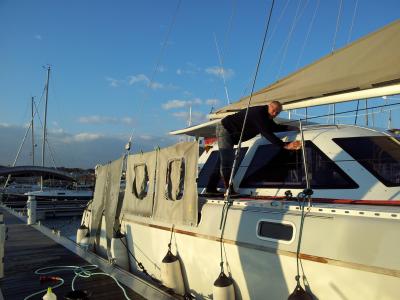 Festmacher ersetzen, zurechtschneiden, neu verschweißen, Ruckdämpfer einbauen, Ölwechsel, Dieselfilter wechseln, Wasserfilter wechseln, Impellerwechsel, Rigg-Check, Fahrräder reparieren, Hydraulikzylinder der Passerelle wieder einsetzen, Windgenerator reparieren, W-Lan-Antennentreiber installieren (hurra, seit Montagabend haben wir ein funktionierendes WiFi, nicht besonders schnell aber ziemlich stabil, d.h. Ihr könnt uns jederzeit – solange wir hier sind – jede Menge!!!! Emails schicken und ich werde mal wieder ein paar Bilder einstellen zu den letzten Beiträgen)