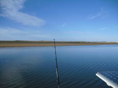 und können uns noch kurze Zeit sonnen, bis der Schatten die Gänsehaut hervorzaubert, die für die nächsten 1 ½ Std. das Hautbild bestimmen soll. Denn: kaum aus dem Schutz der Strand-begrenzenden Felsen heraus, weht uns ein kalter Wind entgegen, der uns außerdem das nun ablaufende Wasser entgegen bläst und unser Beiboot über die vielen kleinen Wellen klatschen lässt. Nasse Haare, nasse Haut, Gänsehaut, etwa 15°C Außentemperatur, durch den Windchill-Factor gefühltes sonniges Sibirien! Dann… im langen Anfahrtskanal zum Hafen streikt der Außenborder. Peter versucht immer wieder, ihn zu starten. Nichts geht. Meine hektischen, ausholenden Versuche, das Boot – paddelnd – in Richtung Hafen zu bewegen, verursachen den Beinahe-Verlust von Peters rechtem Auge, können aber das Abgetrieben-Werden mitnichten verhindern. Wir können uns irgendwie an den Festungssockel des kleinen Forts manövrieren, wo Peter den Außenborder – eine „atemberaubende“, blaue, stinkende Abgaswolke erzeugend – wieder zum Laufen bringt. Peter, auf der Kante sitzend, mit einer Hand Benzin pumpend, rast mit Vollgas Richtung Schiff, während ich – zur Beschwerung des Bugs – unter den pitschnassen Handtüchern, hinter den Gummiwülsten kauernd, ordentlich durchgerüttelt werde.