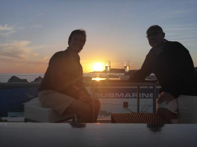 Pünktlich zum Sonnenuntergang zurück, nehmen wir einen kleinen Sekt in der Marina-Bar, um den Heiligen Abend (mit canarischem feeling) einzuläuten.