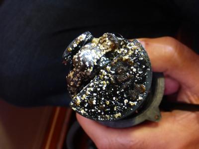 Dann kommen Matthias und Regina an. Matthias, seines Zeichens Schiffsbetriebsingenieur mit C6 Patent hat bereits von unserem Schadensfall gehört. Gemeinsam mit Peter überprüft er das Gutachten mit der Erkenntnis, dass die Aussagen in weiten Teilen falsch sind. Die Basis des Gutachtens erweist sich als nichtig, da der Schaden nicht – wie behauptet – durch Überspannung, sondern durch einen direkten Blitzeinschlag verursacht wurde. Die UKW-Antenne im Mast-Top ist pinselförmig aufgeplatzt.