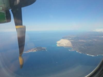 Mit „Binter-Air“: die kleine Insel Lobos aus der Luftperspektive… (Weiter rechts im Bild übrigens einer der riesigen Strände von Fuerteventura)