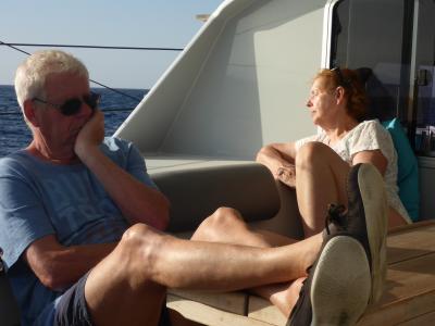 Wenn Gäste an Bord sind, dann bedeutet das auch für uns immer „Urlaub“: Installations-, Reparatur-, Putz- und Polierarbeiten werden auf einen späteren Zeitpunkt verschoben. Wir genießen das Hier und Jetzt.