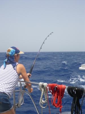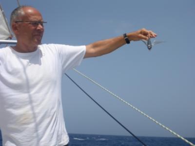 Ab und zu plagt uns der Ehrgeiz des Anglers. Sieben Tage bereits auf dem Atlantik und nicht einmal war uns Petri Heil vergönnt.