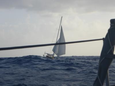 Ab 7.00h übernimmt Peter wieder und ich darf ins Bett. Wenn ich gegen 10.00h aus der Koje krieche, hat Peter bereits ein Ingwerwasser für uns vorbereitet, der atlantischen Funkrunde zugehört, neue Wetterdaten empfangen, Dieters Bericht gelesen und versucht, mit Frank ein Funkgespräch zu vereinbaren.