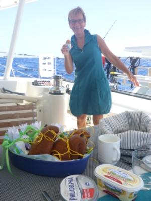 Tagsüber haben wir viel Zeit zum Lesen, Dösen, Schreiben, Angeln, Brot- oder Kuchenbacken, das Spiel auf dem Akkordeon üben oder die Segelstellung zu optimieren.