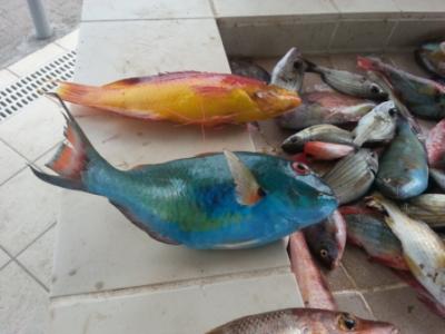 Die magere Ausbeute dieser dreistündigen, Kräfte-zehrenden Aktion ist, soweit wir das sehen können, drei etwa 40cm lange Fische pro Person.