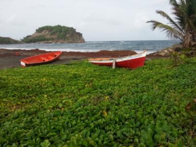 In helle Begeisterung verfallen wir, als wir von der Nordostspitze der Insel auf die Tobago-Cays, Mayreau, Petite Martinique, Petit St. Vincent und Union Island schauen können. Eine von Riffen umgebene Wasserfläche, die kaleidoskopisch alle Farbtöne zwischen hellem Türkis und Königsblau wiederspiegelt.