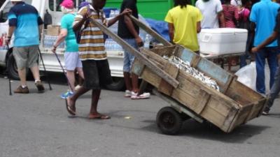 (Das Lambi-Muschelfleisch wird hier als Delikatesse angeboten, ist aber äußerst selten eine solche, da meist sehr zäh…)