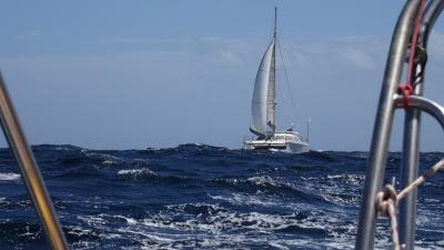 Peter kommt ans Heck und sieht die Bescherung. Badehose an, scharfes Messer, Schere und er verschwindet im Wasser. Er taucht auf und drückt mir das abgeschnittene Ende der Angelleine in die Hand, um wenigstens den Köder noch zu retten.