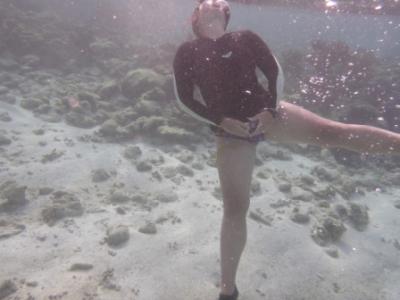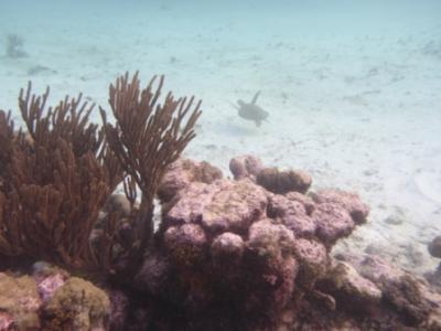 Das Wasser unter uns ist glasklar, Schildkröten und sogar ein Rochen gleiten unter uns hindurch und das Riff am Südende der Bucht soll ein lohnenswertes Schnorchelrevier sein.