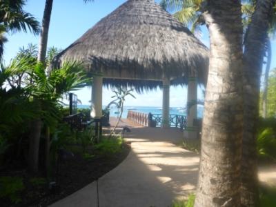 Bergauf, bergab, in Bögen immer wieder der Küstenlinie folgend, wandern wir in der größten Mittagshitze in Richtung Norden… bis wir vor dem Eingangsportal des Resorts stehen.