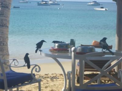 Das ändert sich am nächsten Tag. Es ist Samstag, d.h. Neubelegung von Hotelzimmern und Crew-Wechsel auf Schiffen. Sukzessive reisen Gäste an und ab. Die Abreisenden kommen allerdings von der Seeseite. Weit draußen ankern zwei Luxusyachten. Livrierte sausen mit schicken Beibooten heran, um ihre Herrschaft mitsamt der Kofferberge am Dinghi-Steg abzusetzen. Von dort geht’s mit dem Taxi zum 2km entfernten Flughafen, der seit einigen Jahren auch Privat-Jets eine Landebahn bietet.