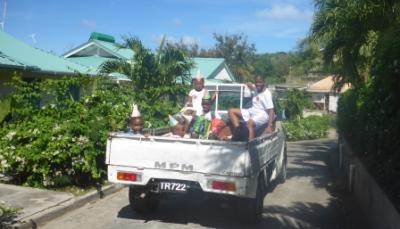 Prompt rückt eine Fahrzeugkolonne mit einem riesigen Lunch-Buffet für die Hotelgäste des „Cotton-House“ an und man vertreibt uns aus der Palmenhütte.
