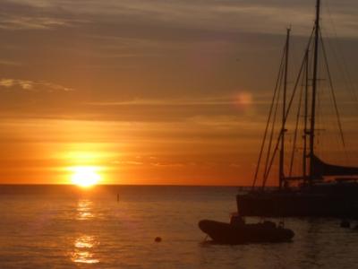 Man sitzt beim „ Sundowner“, der heute – nach vielen Tagen des einfachen Verschwindens der Sonne hinter Wolkenbergen – seinen Namen mal wieder zu Recht trägt.