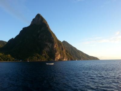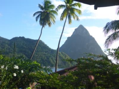 Die beiden Pitons, Wahrzeichen auch in der Nationalflagge von St. Lucia. Oft wünsche ich mir, ein besserer Fotograf zu sein…