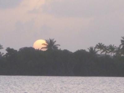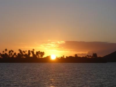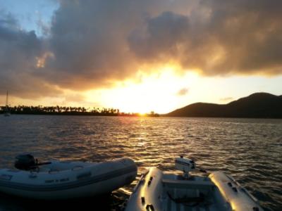 Nicht allzu oft aber wenn, dann doch sehr, sehr schön und stimmungsvoll sehen wir den Sonnenuntergang von unserem Ankerplatz aus.