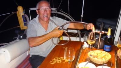 und anschließend – in mondloser Nacht – ziemliche Probleme haben – zu Fuß, am Strand entlang – zu unserem Schiff zurück zu finden und die Nacht mutterseelenallein an einer Boje verbringen.