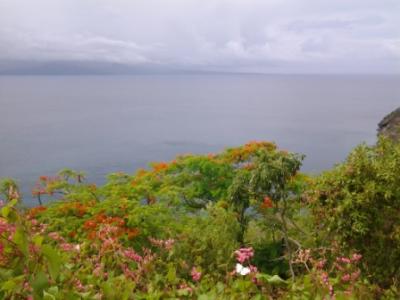 Baden im klaren kalten Wasser der Wasserfälle von „Ecrivisses“, Espressopause am Strand von Malendure mit Blick auf die „Ilet de Pigeon“, um die herum sich der fantastische Unterwasserpark des Herrn Cousteau ausbreitet und Mittagessen in Deshaies, wo wir Matthias und Regina wieder treffen.