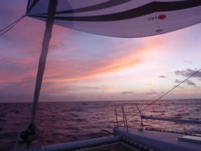 Um 18.00h befinden wir uns genau 19sm vom nördlichsten Punkt der „Aves de Sotovento“ und schauen sehr oft in diese Richtung, um das eventuelle Herannahen einer Piroge erkennen zu können. Wir sehen nichts und hoffen sehr, dass unsere PIA nicht – als vorbei schwimmende „Opportunität“ – von möglichen Piraten erkannt wird aber in der hereinbrechenden Dunkelheit allmählich verschwinden wird.