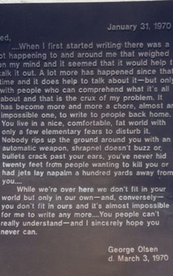 auf dem Boden „herumfliegende“ dünne Kupferplatten mit aufgebogenen Ecken symbolisieren die Briefe von Kriegsgefallenen an ihre Lieben…