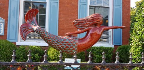 …und überall: Meerjungfrauen….Hier vor dem Stadthafen