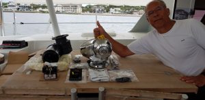 Nebenbei leeren wir unser „Paketdepot“ auf der Obelix, die freundlicherweise unsere hierher beorderten Ersatzteile entgegengenommen hat. Neue Werkzeuge kommen erstmals zum Einsatz, einige Ersatzteile und Neuanschaffungen werden eingebaut, für die neue Lichtmaschine muss allerdings noch die Halterung abgeändert, eine neue Keilriemenscheibe bestellt, sowie ein neuer Regler eingebaut werden.