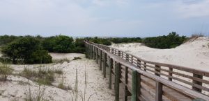 weiße Dünen, die man über gewundene Holzstege erreicht und ein kilometerlanger Strand,