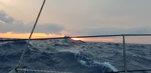 Die erste Nacht auf See – nach so langer Zeit an Land – ist schlichtweg doof. Weder Peter noch ich können in der Freiwache gut schlafen, der Kurs mit schwachen aber wechselnden Winden und einer komischen Welle ist ungemütlich…