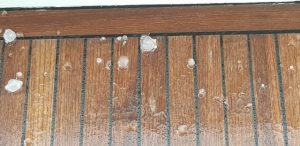 Beim Gang ins Cockpit werde ich zum x-ten Mal an eine weitere, große Unterlassungssünde erinnert. Wir haben den Außenborder am Dinghi belassen. Ca. 100kg werden nun – wie beim Bungee-Jumping – in der Aufhängevorrichtung unter dem Spoiler immer wieder ächzend und knarzend abgefedert. Dabei erscheinen mir die Rollen und Leinen plötzlich verdächtig unterdimensioniert.