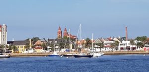 Viermaliges tägliches (Strömungs-bedingtes) Drehen um 180°, Warten auf- und Einbau von Ersatzteilen, Brüten in schwüler Sommerhitze, Abwettern von Wolkenbruch-artigen Regenfällen und Hagelschauern, flotte Fußmärsche kreuz und quer durch St. Augustines Flaniermeilen,zu historischen Sehenswürdigkeiten, durch grüne Außenbezirke und Schiffsausstatter-Läden lassen die Zeit dennoch schnell vergehen und sorgen für schöne Erinnerungen im Kopf.