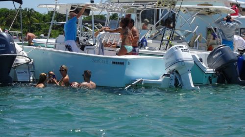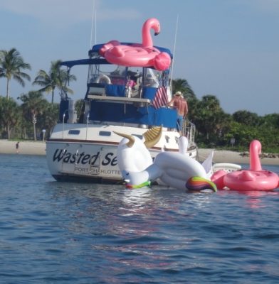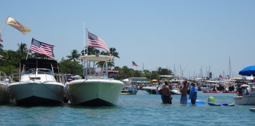 Der Memorial Day gilt allerdings auch als Beginn des Sommers, den Familien und Feierfreudige gerne nutzen zu ersten Bade-, Picknic-, Grillaktivitäten und Bootsausflügen. Und wie schön, dass der Gedenktag diesmal das Wochenende verlängert. Nichts bietet sich da mehr an, als WestPalmBeach mit seinem kleinen, mitten im ICW liegenden Peanut-Island. Bereits am Samstag werden die Strände der kleinen Insel zu Grillgelagen genutzt. Am Sonntag sind die Strände des Inselchens hoffnungslos überfüllt. Dicht an dicht liegen die Boote am Strand. Unterschiedliche Musik dröhnt von jedem Schiff. Gefeiert, getrunken und gesungen wird auf den Booten, unter überdimensionalen, an hohen Stangen auswehenden „Stars and Stripes“ oder im Wasser stehend.