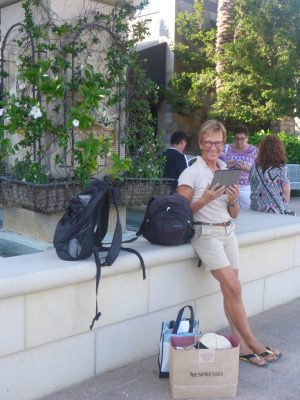 Die beiden sind seit einer Woche hier, haben ein Auto gemietet und führen uns am nächsten Tag in die amerikanische Lebensart ein: Telekommunikation und Internet, Auto anmieten, Fahren, Verkehrsregeln, Einkaufsmöglichkeiten etc. Wie die Landpomeranzen, die zum ersten Mal in eine Großstadt sehen, kommen wir aus dem Staunen über die in diesem Land üblichen Dimensionen nicht mehr heraus. Tante Emma-Läden: ausgeschlossen! Es gibt riesige Malls mit 50 und mehr Geschäften darin, umgebende Parkplätze, die einen 5-10min. Marsch bis zum Eingangstor der Mall erfordern; aber alles auf der grünen Wiese, weit ab vom Stadtzentrum oder fern von einer Marina. Ohne Auto ist man aufgeschmissen, ohne Kreditkarte auch. Bargeld? Das gehört doch ins letzte Jahrhundert! Außer Wasch- und möglicherweise Parkautomaten wird hier alles mit Kreditkarten bedient. Als erschwerend erweist sich die Tatsache, dass jeder Amerikaner davon ausgeht, dass alle Touristen selbstredend Englisch sprechen und auch den übelsten amerikanischen Dialekt – maschinegewehrartig gesprochen –verstehen.