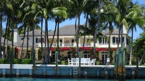 Unser Ankerplatz gewährt uns einen Blick auf die Bebauung der Ufer des ICW. Eine Villa der Extraklasse reiht sich an die nächste.