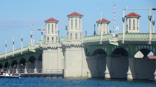 Wir legen wieder eine Nachtfahrt ein und haben ab 5.00h morgens ein ziemlich ungutes Gefühl wegen der enormen Gewitter, die sich wenige Meilen östlich von uns austoben. Vorsichtshalber wandern Laptops, Tablet und Mobiltelefone in den Backofen. Aber wir bleiben verschont und können um 15.00h die wunderschöne (für uns geöffnete) Lionsbridge von St. Augustine passieren.