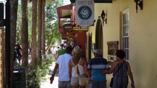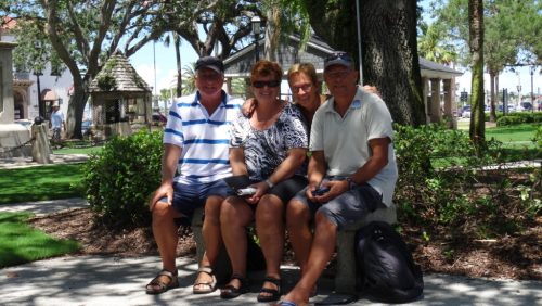 Das charmante Städtchen St. Augustine mit seinem dichten Stadtzentrum erinnert ein wenig an eine spanische Kleinstadt am Meer und hebt sich wohltuend von den weitläufig angelegten, sich an der Straße entlangziehenden Küstenortschaften ab. Man hütet und pflegt hier sehr sorgsam die Überbleibsel aus der spanischen Ära der Stadt. Alles hier befindet sich in „Walking Distance“ und wird auch von vielen Amerikanern zu Fuß!!!! erkundet. Kleine Gassen, begrünte Innenhöfe, Blumenschmuck an den spanischen Balkongeländern, weiße Schaukelstühle auf den Verandas (an Filme aus den Südstaaten erinnernd) an pastellfarbenen Hauswänden wuchernde Bougainvilleas in Weiß, Violett oder Orange…da geht das Herz auf. Es gibt unzählige Cafes, Bistrots, Restaurants (leider fast durchgehend mit allenfalls mäßigem aber preislich überaus gesalzenem Essensangebot) das berühmte Flagler College, das älteste Haus, das hölzerne Schulhaus, das span. Lazarett, die Festung San Marcos und die Kathedrale, Museen nach europäischem Geschmack aber auch „Ripleys Believe it or not“ mit viel Kitsch und unmöglichen Curiositäten.