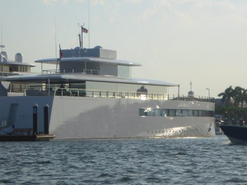 Vor jedem dieser noblen Anwesen liegt die entsprechende MotorYacht bzw. das Beiboot, das die Inhaber zu Selbiger bringen kann. In unmittelbarer Nachbarschaft übrigens liegt die futuristisch anmutende Megayacht von Steve Jobs.