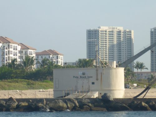 Die Suche nach einem geeigneten Ankerplatz gestaltet sich schwierig. In der Nähe von Obelixens wird das Wasser sehr schnell sehr flach, am Heck der PIA steigen bereits Sandwolken auf, um das Peanut-Island herum ist’s unmöglich. Wir finden letztendlich auf der anderen Seite des Inlets einen Platz. Ungemütlich starke Strömung, starker Wind und starker Regen. Heißt Florida uns so willkommen??? Aber unser Anker hält (stark!!) und wir legen uns – angekommen im XXL-Land – erstmal aufs Ohr.