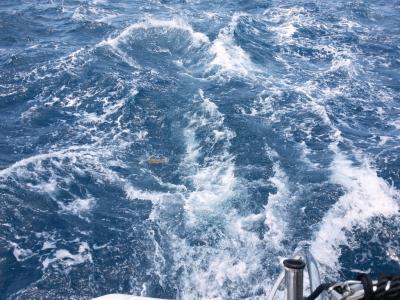 Die ersten Stunden zeigen, dass wir bei dem Gegenwind und der Gegenströmung nicht segeln können, sondern 70sm Motorfahrt vor uns liegen.
