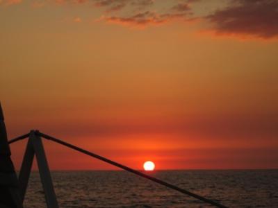 Ein herrlicher Sonnenuntergang NACH einem aufregenden Tauschgeschäft und VOR einer sehr windigen, welligen und schaukeligen Nacht…