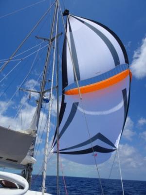 Morgens um 8.30 fährt die Magic Cloud bereits an uns vorbei. Wir wünschen einander eine gute Fahrt und wollen in Funkkontakt bleiben.