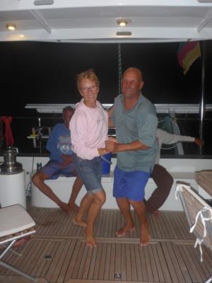 Alle haben ihre Handys dabei und freuen sich, die Akkus bei uns laden zu können. Im Cockpit herrscht eine Bombenstimmung. Ein Musikwürfel sorgt für fetzige Musik, man lacht, diskutiert und erzählt, unterhält sich in einem gestikulierenden Gemisch aus Spanisch und Englisch und … beginnt schließlich zu tanzen. Chris und ich werden abwechselnd von vier Tänzern auf die „Tanzfläche“ gebeten. Ein Super-Tänzer ist dabei, der sich redlich Mühe gibt, unserem Tanzstil ein wenig mehr Geschmeidigkeit zu entlocken. Hm, wie finden wir denn das??? Es ist jedenfalls nicht unnett!!!