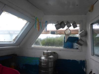 Am Ankerplatz angekommen steigt Peter ins stark strömende, braungrüne Wasser und ist 20cm unter der Wasseroberfläche bereits nicht mehr zu sehen. Er muss sich am Propeller halten, um nicht abgetrieben zu werden, kann aber nicht erkennen, ob etwas in die Schraube geraten sein könnte. Lediglich der Tastbefund sagt, dass die Schraube wahrscheinlich in Ordnung ist.