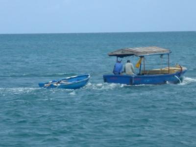Ich schäme mich ein wenig, diesen harmlosen, ehrlichen Fischern böse Absichten unterstellt und dabei nicht erkannt zu haben, dass dieser dünne junge Mann und seine Kollegen einfach nur Hunger hatten. Mit Reis, Kartoffeln oder Brot hätten wir ihnen vielleicht eine größere Freude bereiten können…