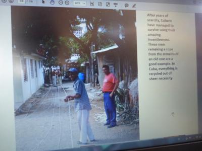 Der seitl. Text beschreibt sehr treffend die in der Zeit der Mangelwirtschaft entstandene Fähigkeit der Kubaner, alles Alte und Gebrauchte zu recyclen, um es neuem Gebrauch zuzuführen.