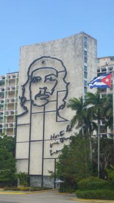 Das Taxi für Wim und Trudi ist da. Sie werden zum Flughafen von Varadero, ca. 100km östlich von Havanna, gebracht und wir versuchen mit dem Touristenbus in die Marina Hemmingway zu gelangen. Auf der „Plaza de la Revolucion“ bekommen wir keinen Anschluss mehr und müssen – unweigerlich – in praller Sonne stehend – diesen Riesenplatz (für 1,5 Mill. Menschen) betrachten. Die allgegenwärtige, kubanische Heldenverehrung hier als Gigantismus. Nationalheld José Marti in der Mitte des Platzes als riesiges Memorial. Dahinter ein gewaltiger (105m) Obelisk, in dem das Leben und Wirken des kubanischen Dichters, Juristen und Unabhängigkeitskämpfers erklärt wird und an der Fassade der gegenüber liegenden Ministerien die stilisierten Konterfeis Che Guevaras und Fidel Castros mit dem Revolutionsmotto: „Hasta la victoria siempre“…
